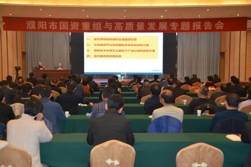 12月16日晚,市財政局聯(lián)合濮陽(yáng)投資集團、濮陽(yáng)城發(fā)投集團舉行濮陽(yáng)市國資重組與高質(zhì)量發(fā)展專(zhuān)題報告會(huì )暨“夜校”集體學(xué)習(第七期)活動(dòng)。華彩咨詢(xún)集團總裁、國務(wù)院國資委“十四五”規劃課題組專(zhuān)家、國資國企改革與集團戰略專(zhuān)家白萬(wàn)綱受邀以《國資重組與高質(zhì)量發(fā)展》為主題作專(zhuān)題報告。市委常委、常務(wù)副市長(cháng)趙建玲主持報告會(huì ),市財政局黨組書(shū)記、局長(cháng),濮陽(yáng)投資集團黨委書(shū)記、董事長(cháng)潘順恩作總結講話(huà)。