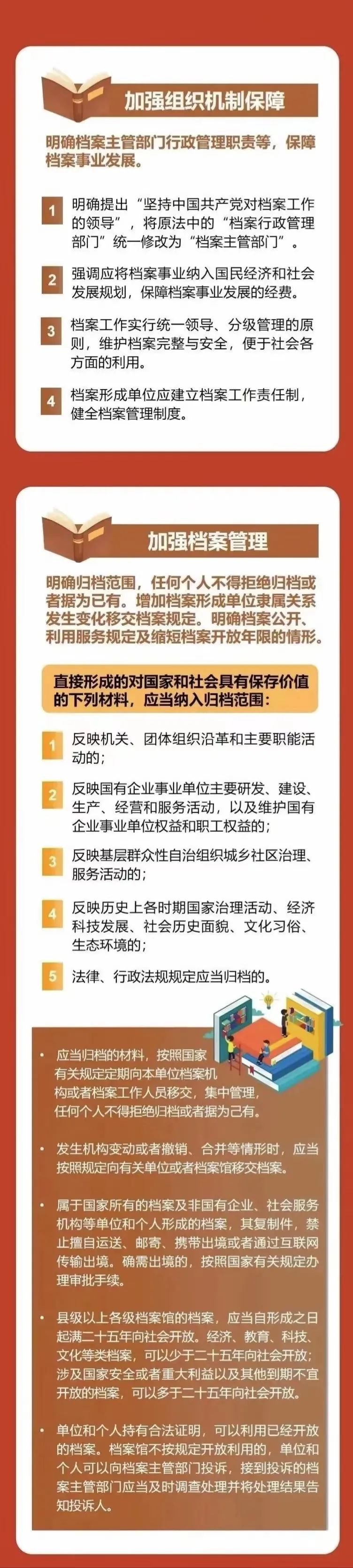 2020年6月20日,第十三屆全國人民代表大會(huì )常務(wù)委員會(huì )第19次會(huì )議審議通過(guò)了新修訂的《中華人民共和國檔案法》,以第47號主席令的形式予以公布,自2021年1月1日起正式施行。