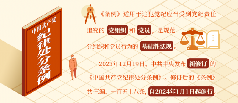 2023年12月19日,中共中央發(fā)布新修訂的《中國共產(chǎn)黨紀律處分條例》。修訂后的《條例》共三編、一百五十八條,自2024年1月1日起施行。
