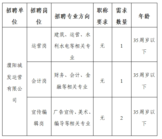 濮陽(yáng)城發(fā)運營(yíng)有限公司人才招聘公告