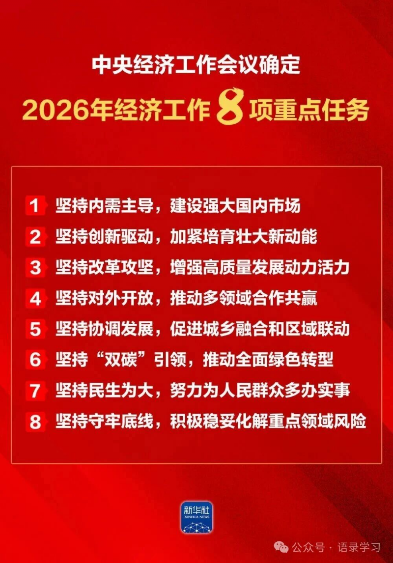 中央經(jīng)濟(jì)工作會議確定2026年經(jīng)濟(jì)工作8項重點(diǎn)任務(wù)
